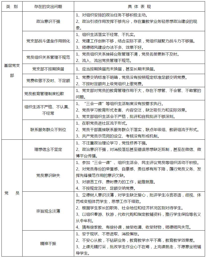 基层党支部和党员存在的突出问题清单