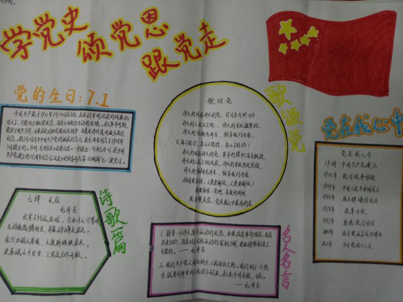 同学们以学习小组为单位,积极参与,分工合作,有的同学负责搜集资料、有的负责版面设计,有的负责文字编辑。在班主任老师的指导下,他们在自己的作品中尽情发挥创意,用缤纷的色彩描绘了党的光辉形象,用感性的文字描述了党的发展历史,用青春的热情谱写了党的赞歌。如C1705班的林莺等同学在手抄报号召同学们“团结奋斗,振兴中华”,C1702班王思怡同学在《党啊,我想对您说》一文中深情写道:“亲爱的党啊,您犹如心灵的翅膀,引我成长,催我奋进!”