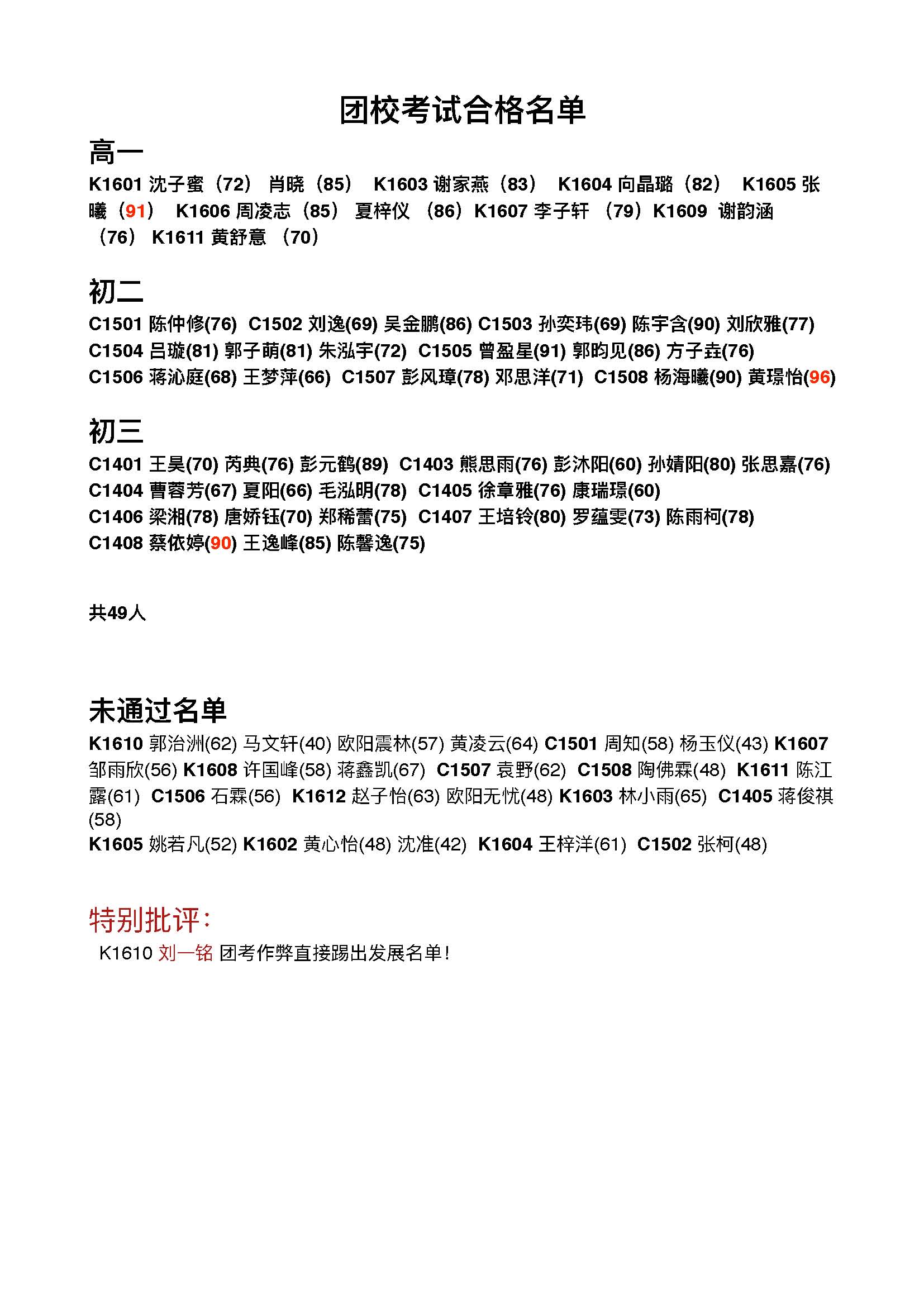 团校考试通过名单