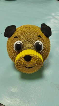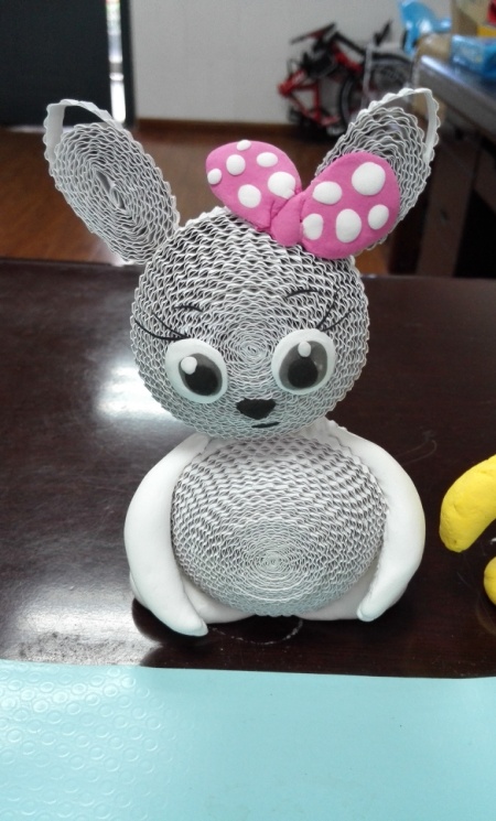 整体组合及装饰——将做好的各部分粘合成整体,再用轻轻泥或卡纸等材料根据设计给玩偶进行整体装饰,放置干透即可。
