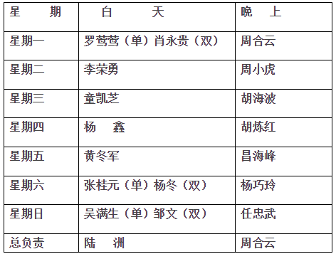 2016年下学期第11周工作安排 来源: 发布时间:2016-11-08 17:24:00 浏览次数: 次 【字体:小 大】 第11周工作安排:11月7日星期一:下午省语文国培项目“种子教师提升工程”来校考察交流;校运会筹备会;年级组长会11月8日星期二:初三期中考试11月9日星期三:初三期中考试11月10日星期四:期中考试11月11日星期五:期中考试11月12日星期六:休 息11月13日星期日:休 息行政值日: 总值日:黄 佳 分享到: 【打印正文】