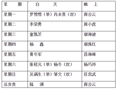 2016年下学期第18周工作安排 来源: 发布时间:2016-12-28 17:31:00 浏览次数: 次 【字体:小 大】 第18周工作安排:12月26日星期一:下午班主任会12月27日星期二:上午8:00迎接市教育局绩效、廉政集中考核工作;9:15在二楼报告厅召开领导班子述职述廉测评大会12月28日星期三:初三音乐美术考试12月29日星期四:上 课12月30日星期五:初三英语口语考试;下午元旦文艺汇演12月31日星期六:元旦放假1月1日星期日:元旦放假 行政值日: 总值日:黄 佳 分享到: 【打印正文】