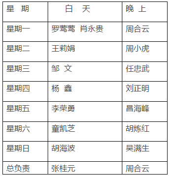 第2周工作安排 来源: 发布时间:2016-03-17 17:11:00 浏览次数: 次 【字体:小 大】 2月29日星期一:下午年级组长会3月1日星期二:上 课3月2日星期三:下午迎接市教育局开学工作专项督导检查;教研活动3月3日星期四:教研活动3月4日星期五:上 课3月5日星期六:休 息3月6日星期日:休 息 行政值日: 总值日:黄佳 分享到: 【打印正文】