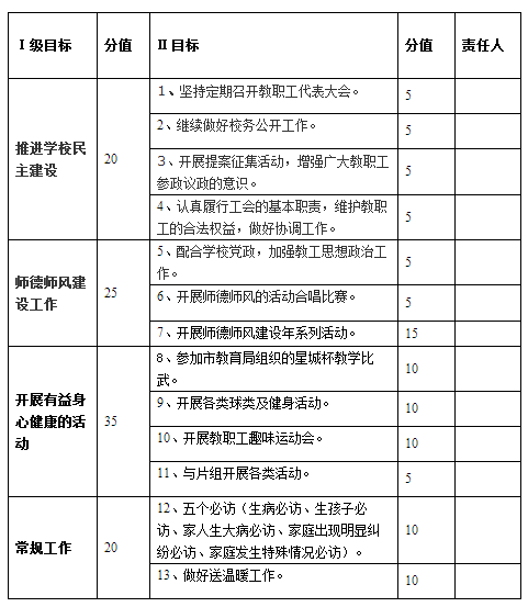 2012-2013年上学期学校工会工作目标自报表