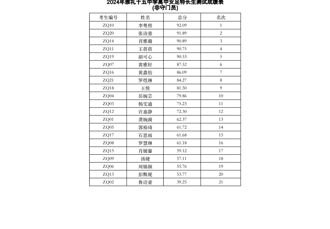 2024高中特长生测试成绩公示表
