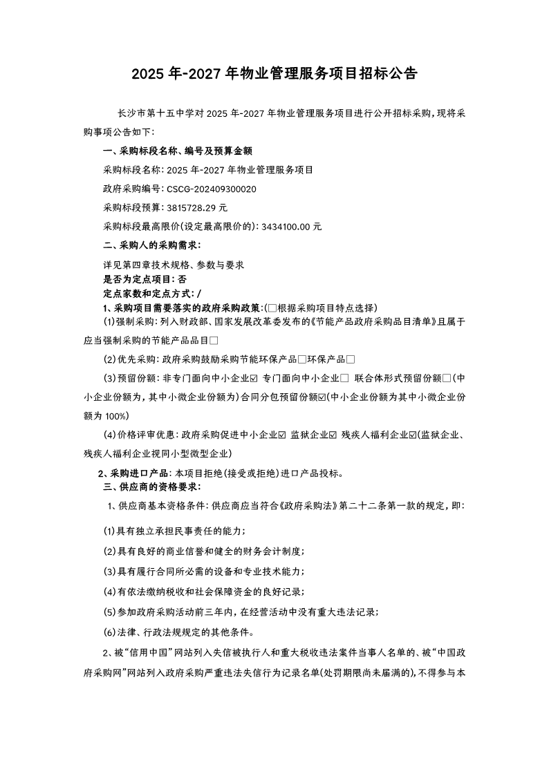 2025年-2027年物业管理服务项目招标公告