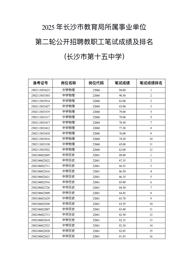 2025年长沙市教育局所属事业单位 第二轮公开招聘教职工笔试成绩及排名 来源: 发布时间:2025-04-27 11:39:07 浏览次数: 次 【字体:小 大】 终审:swzxw 分享到: 【打印正文】