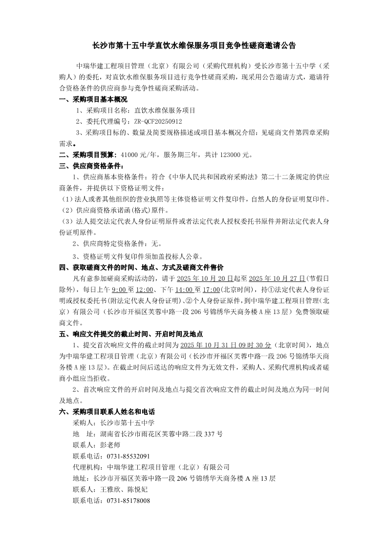 6163银河直饮水维保服务项目竞争性磋商邀请公告