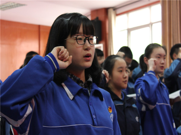 “我宣誓:我志愿加入中国共产主义青年团,坚决拥护中国共产党的领导,遵守团的章程……”4月11日中午,我校新团员入团宣誓仪式在学校科学馆二楼报告厅举行,共有44名新团员参加宣誓仪式。团委书记杨冬、刘珍荣老师以及部分团委干部参加 。
