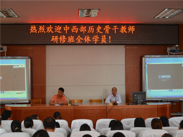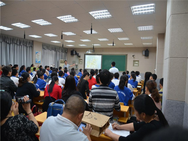 2015年10月22日上午,湖南师范大学“国培计划中西部历史骨干教师研修班”全体学员在余柏青教授的带领下来到我校,与我校历史教研组展开以历史课堂同课异构为主要形式的教研交流活动。我校童凯芝老师与来自湖南师范大学中西部国培计划的肖健老师分别上了示范课,课后全体参与教师进行了深入的研讨与交流。此次教研活动生动精彩,吸引了大量老师听课学习。