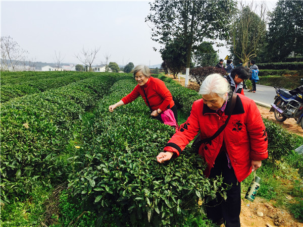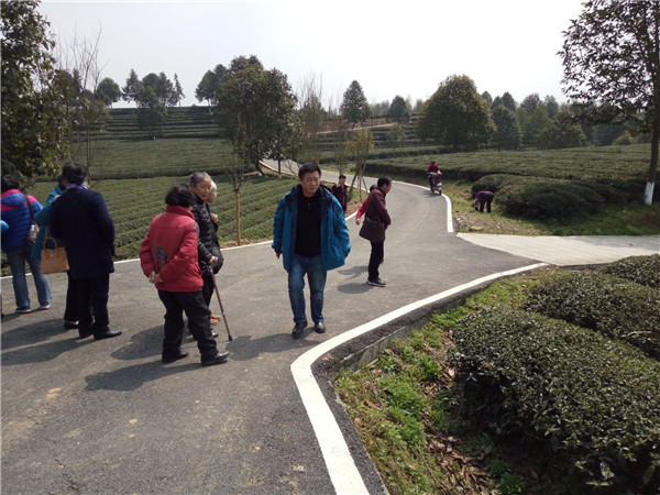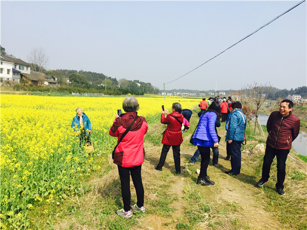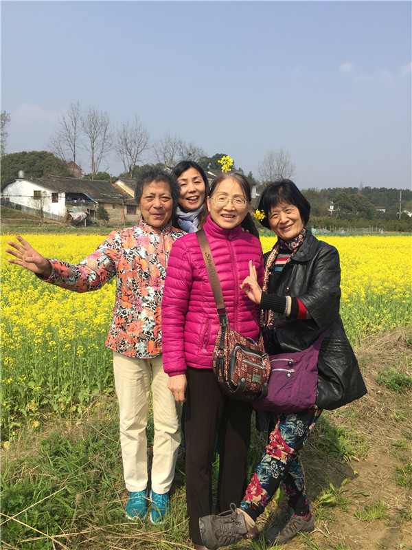 金井的初春,风和日丽,山间地头,各色鲜花恣意盛开。一片片金黄的油菜地,一畦畦碧青的绿茶树,迎着惠风,置身其中,无比惬意。老教师们三五作伴,且行且话,好不热闹。