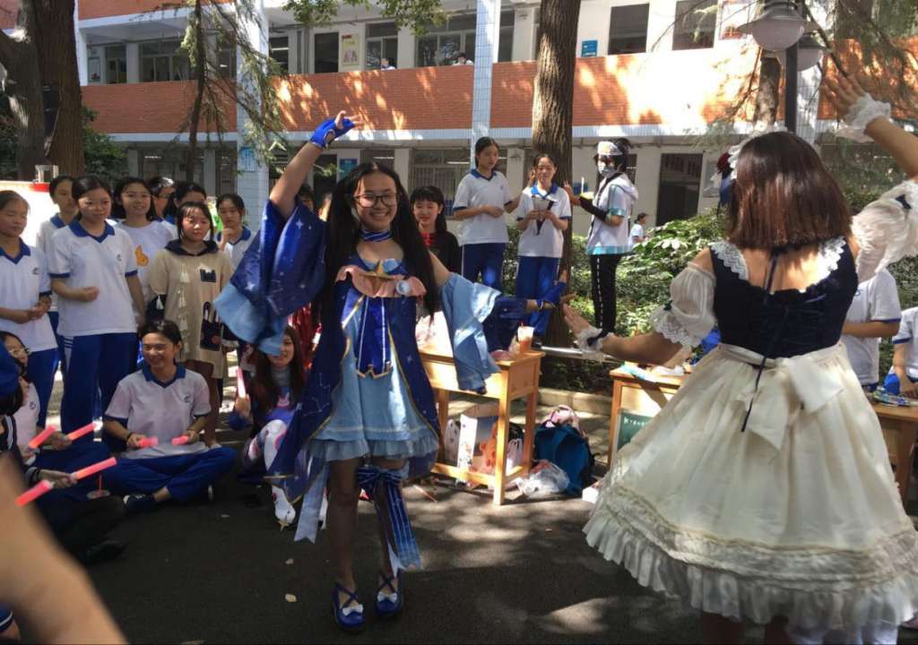 招新现场热闹非凡,除了吆喝着充满吸引力的口号,更有五彩斑斓的海报及各式各样精彩纷呈的才艺表演,为吸引更多的学生加入到自己的社团中来,各社团在招新中可谓各出奇招,纷纷拿出了自己的看家绝活,竭力展示自己的社团文化和特色。音乐社成员轮番上阵,古典乐、流行乐样样在行,他们动听的歌声回荡在整个校园;动漫社的成员们换上日本动漫服饰极力进行展示表演;军政社的成员身穿军装,手持仿真机枪,表情严肃;汉服社的成员们身着汉服,时不时挥一挥长袖,散发出汉代女子特有的风韵……