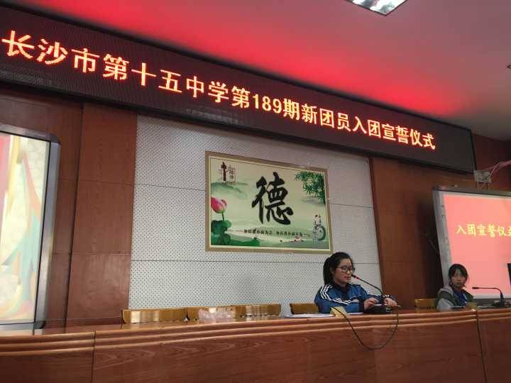 宣誓仪式在高昂的团歌声中开启,在场的所有团员一起唱响这熟悉悦耳的歌曲。随后,在主持人王雅萱的带领下,新团员们右手握拳,手举过肩,进行庄严宣誓。C1508陶佛森同学作为新团员代表发言:为了努力当好团员,实践自己的入团誓言,今后要做到:遵守共青团章程,切实履行团员的义务;刻苦学习,扎实掌握为人民服务的真本领;在团组织的带领下,努力拼搏,为共青团、为学校争光!