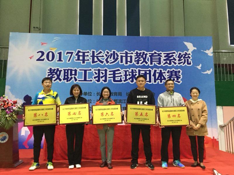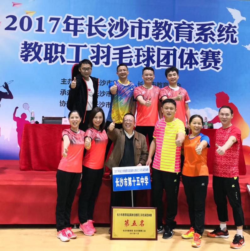 经过两天酣畅淋漓鏖战,长沙市教育系统教职工羽毛球团体赛圆满落下帷幕。我校羽毛球代表队与来自长沙市教育系统41支羽毛球代表队一起参加了本次角逐,一路过关斩将冲进八强,在四强淘汰赛棋逢上届和本届冠军队,无奈以两分之差被淘汰出四强,最后力拼两个强劲对手喜获第五名运动为老师们带来快乐和健康也为学校增光添彩!向队员们表示衷心的祝贺!(附队员名单:黄佳 陈艳山 黄建勋 李军 彭金明 张恒 文开佳 左竟云 袁宋雀 张丽 黄云 教练:李文喆)