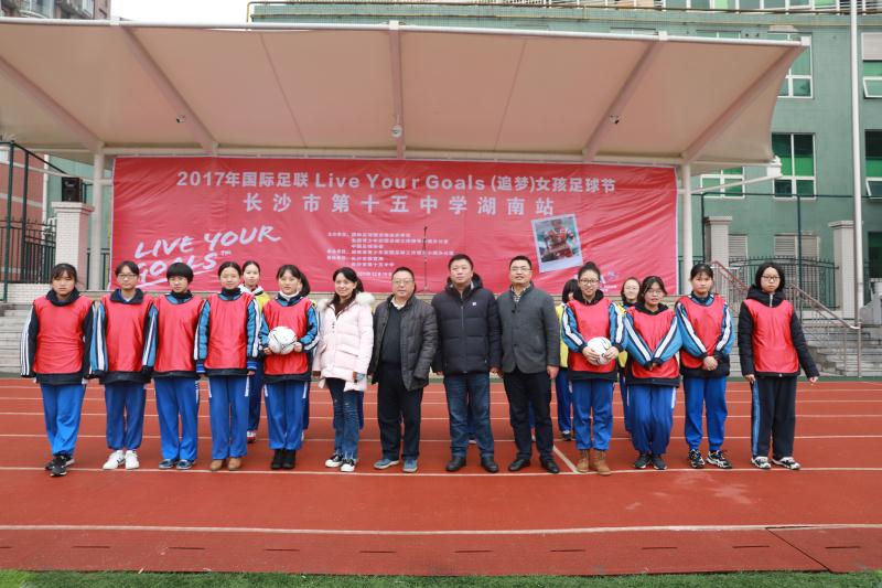 为贯彻落实《中国足球改革发展总体方案》、《中国足球中长期发展规划(2016-2050年)》和《教育部等6部门关于加快发展青少年校园足球的实施意见》等有关文件精神,依托国际足联Live Your Goals活动计划,大力开展青少年女子足球活动, 12月15日, 湖南省长沙市2017年国际足联 Live Your Goals (追梦)女孩足球节6163银河站在十五中田径场隆重举行!学校校长黄佳、党委书记陆洲、教育处主任肖永贵出席了此次活动。