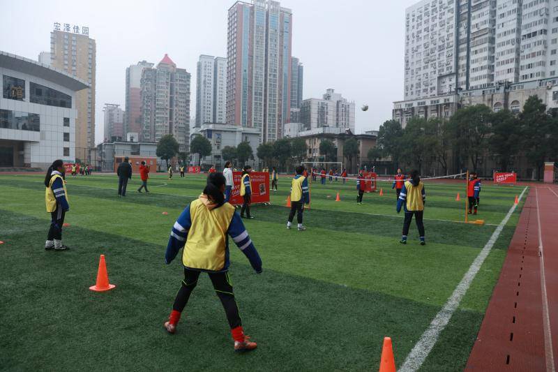 课后,十五中70余名女生身着整齐的红、黄足球队服,井然有序地在主席台下列队,尽管天气寒冷,但是她们仍然一个个精神抖擞,摩拳擦掌,对接下来的足球运动充满期待。足球节在校长黄佳宣布开幕后正式拉开序幕,足球教练钟定友宣读了此次活动的游戏规则,并组织两队运动员实施足球趣味游戏。黄佳和陆洲亲自开球,同学们积极踊跃地参加,在手拉手传球接力赛、协调性控球、五人制足球比赛、射门接力赛、趣味颠球赛等多项足球游戏中,女孩们既体验了足球的魅力,也享受到了运动带来的快乐。