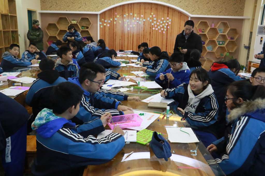 在紧张而又愉快的四天实践时间里,同学们分为3组,每组可以选择8门课程,这些课程都是平时在学校和家里较少接触的知识,给同学们带来了巨大的新鲜感。同学们充分运用在学校形成的“自主学习、合作探究”的学习方法,大胆设疑,热烈讨论,小心求证,在课堂中亲自动手,既掌握了很多科学知识,又培养了团结协作意识。比如传统技艺类课程融合创新,有特色编织、创意手工…… 科技创新类课程中,创意思维换个玩法,科技拼装、3D打印触碰科技最前沿。生活实践类课程中,面点屋里香气四溢,同学们第一次品尝了自己亲手做的饼干。厨艺学堂内,大家更是创意无限,从烹炒到装盘,都是同学们亲力亲为,动手动脑。在团队拓展课程中,天气异常寒冷,木条也很沉重,但同学们丝毫也没有退缩,用稚嫩的肩膀扛起了一座座爬行的浮桥,用实际行动践行了担当与责任。C1605班董瑞麟同学在谈到此次实践活动的收获时说:参加这次社会实践活动,真是受益匪浅。趣味实验、生态种植、厨艺学堂等课程,使我的观察能力、动手能力都得到了提高,在快乐中学习,在实践中发现,真是趣味无穷啊。