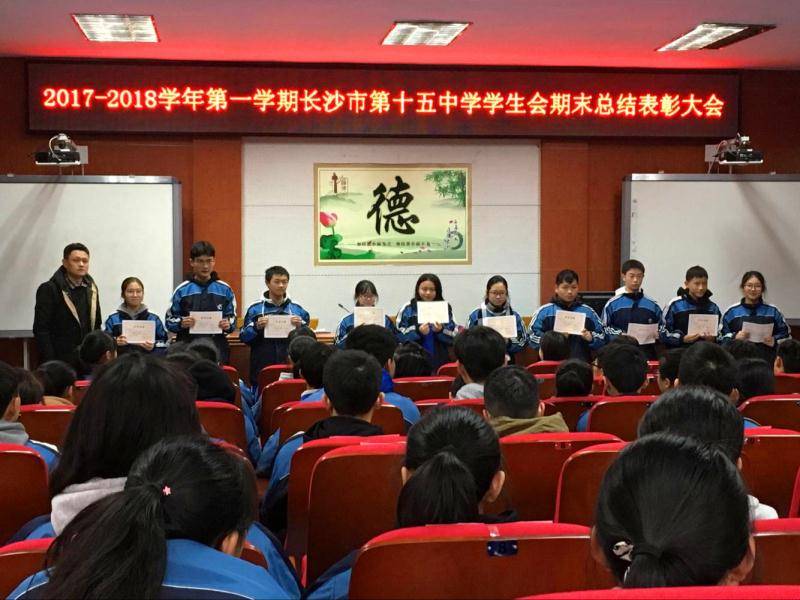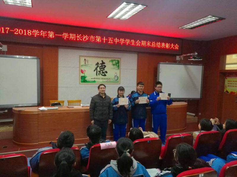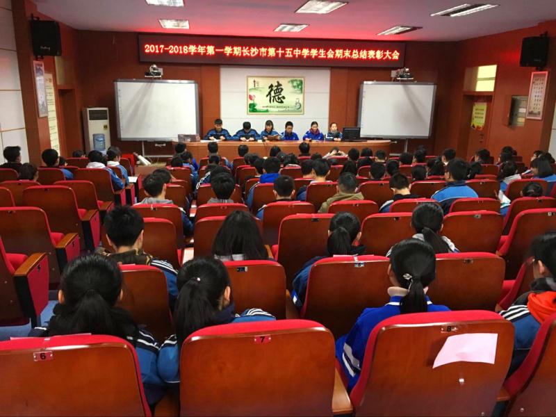 2018年1月16日中午,我校学生会在科学馆二楼报告厅隆重举行2017-2018学年第一学期学生会总结表彰大会。教育处胡海波副主任、彭美玉老师、黄建勋老师、刘钧老师、甘佳事老师、全体学生会及各年级分会干部、往届学生会主席团干部共同参与了此次总结表彰大会。