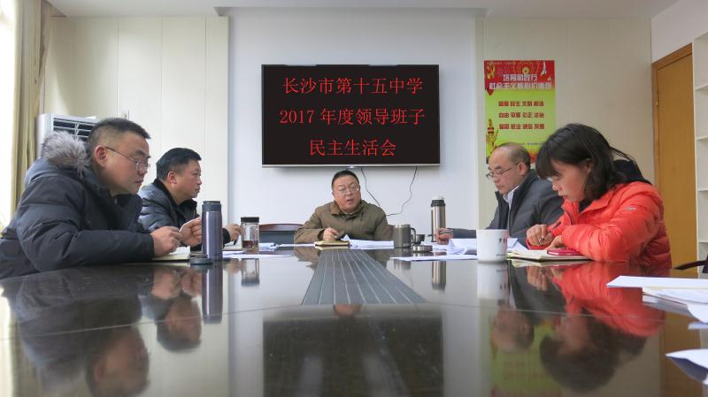 黄佳校长最后作总结发言。他说,此次民主生活会发言针对性强,批评与自我批评到位,每位班子成员态度认真,能精准地抓住推进学校办学和发展中的关键问题,以创建长沙市“文明校园标兵单位”为抓手,提出一系列整改措施,学校会重点对此进行深入研究并予以落实。实干兴校,空谈误人,重在执行,抓在落实,2018年全体班子成员将以忠诚、担当、干净去开创十五中美好的明天。